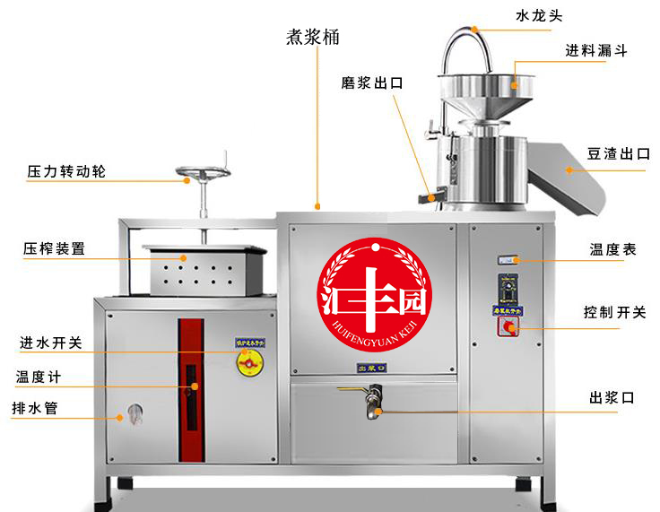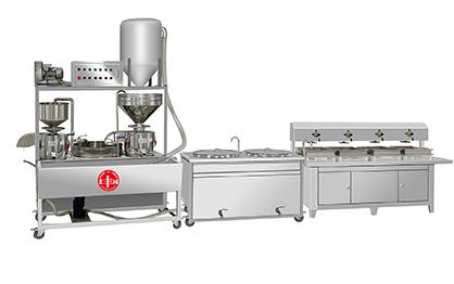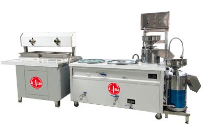 我公司生产即食豆浆、豆腐机在国内是较早的企业,多年来通过对设备的不断改进,利用现代科技与传统工艺的完美结合。使设备外观设计美观、时尚,操作简单,主要有磨浆机、煮浆桶、蒸气机、成型机等组成。机器采用不锈钢制造,干净卫生,技术领先,质量可靠,经久耐用。实现了生产过程自动化,具有高效、省时、耗能低、占地小、无污染等优点。而且采用先进磨浆技术,瞬间加热工艺,保证了蛋白质不受破坏,从而使生产出来的豆制品营养更丰富,味道更鲜美。工艺流程: 将浸泡好的黄豆由高速分离磨浆机加工,排出豆渣,产出的豆浆经过蒸汽加热达到去腥,并煮浆均质,并添加辅助原料消泡、凝固剂(如卤水、石膏、内脂、酸浆等)、成型和深加工处理便可产生出营养丰富的豆制品如:豆浆、豆腐脑、豆腐、豆杆、豆皮、素鸡、豆泡等制品,适用于宾馆、超市、饭店、学校、企业食堂、工程店及食品厂等。
