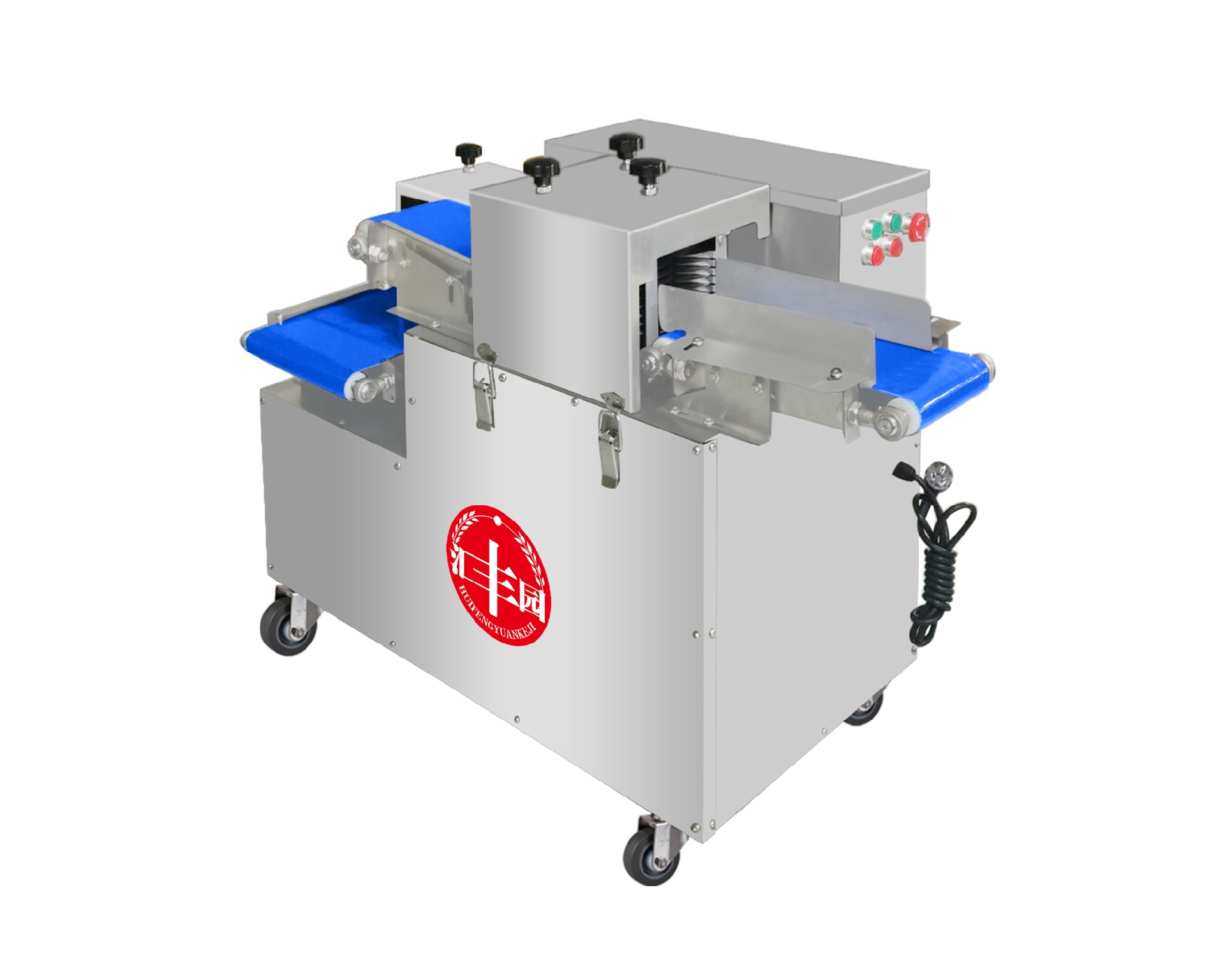 采用输送带进料、出料,切片厚度可按照用户要求制作,可快速更换不同的刀组,满足用户各种规格的切片要求。能快速拆装进、出料 输送带及圆刀片组,整机采用防水设计,全不锈钢制作,可直接用水冲洗机器。产品切割整齐,误差非常小,方便操作,能实现产品快 速包装。标配尺寸25毫米;其它尺寸可定制,主切鲜肉冷鲜肉。一次成条,二次成丁。 | |