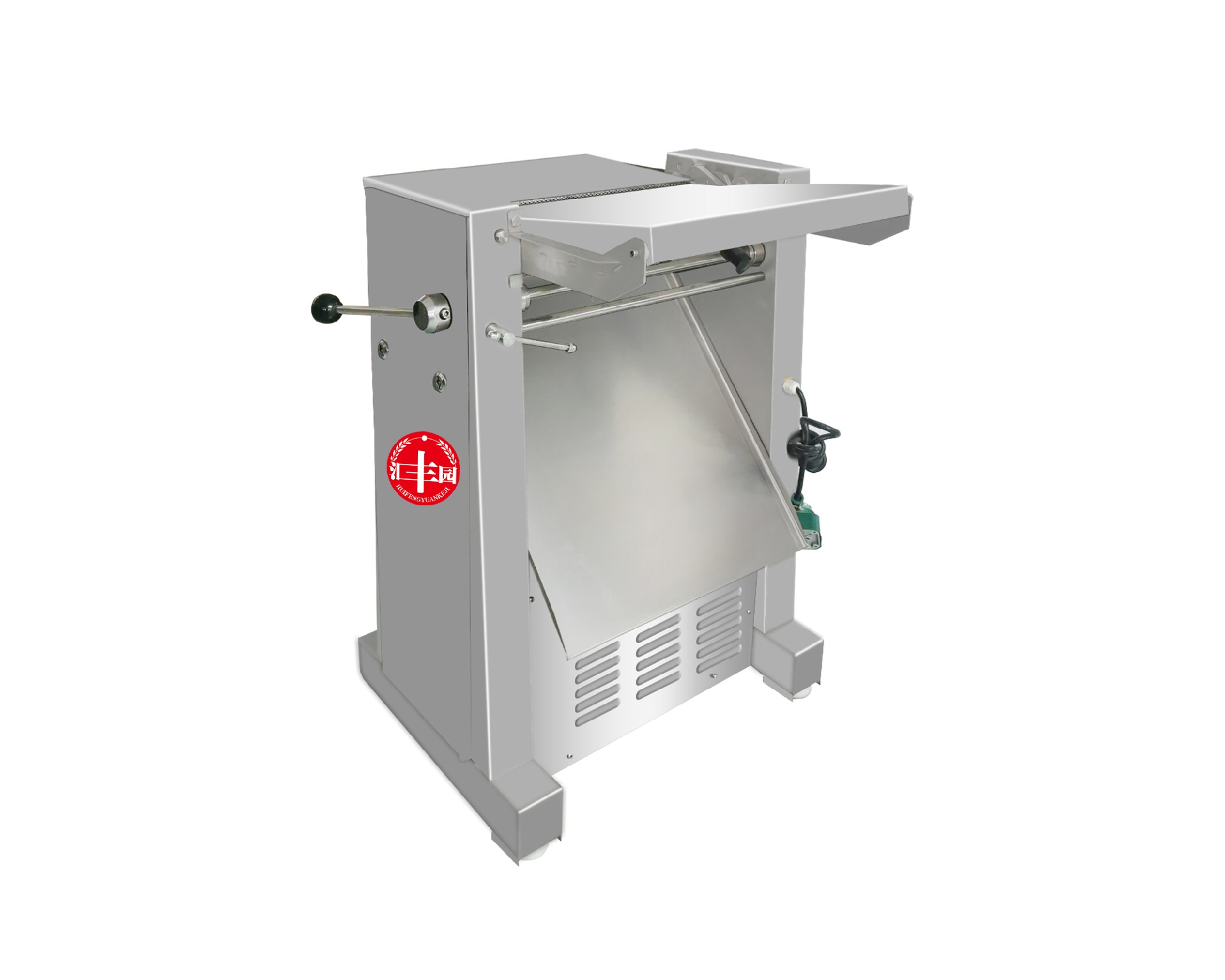 将猪肉牛肉羊肉等类似带皮的食材进行皮肉分离,整块去除脂肪。不锈钢机身,德国进口刀片,可调式刀座,方便调整去皮厚度,移动方便,机器结构精准,运转顺畅,安静低噪音;